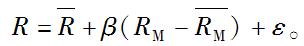 其中,RM 是市场组合的实际收益;是市场组合的期望收益;β 是贝塔系数。此外,市场模型也可以写作 另一种形式,即R=α βR ε