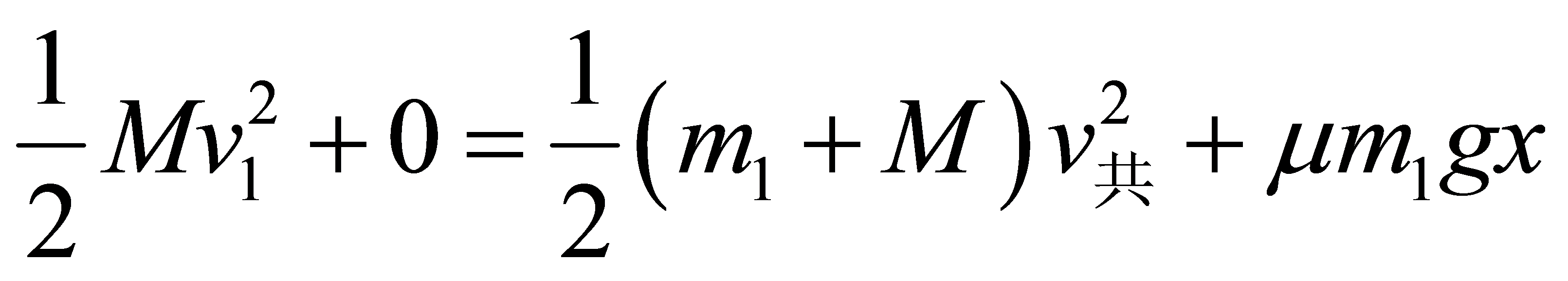 之后,和上面的小滑块P1之间相对滑动,假设最终和木板之间相对静止,两者的共同速度为v共,小滑块P1在模板上相对滑动了x,由动量守恒和能抗守恒可知:
