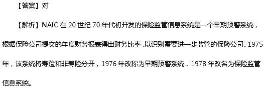 3.美国NAIC执行的一个早期警报系统被称为保险监管信息系统。()[行研究所2004研] 3.美国NAIC执行的一个早期警报系统被称为保险监管信息系统。()[行研究所2004研] 发布时间:2025-12-15 08:14:26