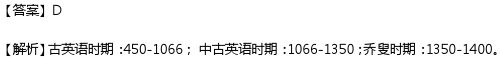 period extended from the invasion of the Celtic England by German tribein the first half of the 5th century to the conquer of England in 1066 by theNorman French under the leadership of William the ConqueroA、The Anglo-normanB、The Middle EnglishC、The Chaucerian EnglishD、The Old English