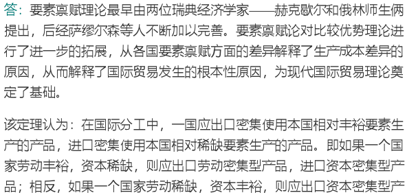 要素禀赋学说认为产生国际贸易的直接原因是